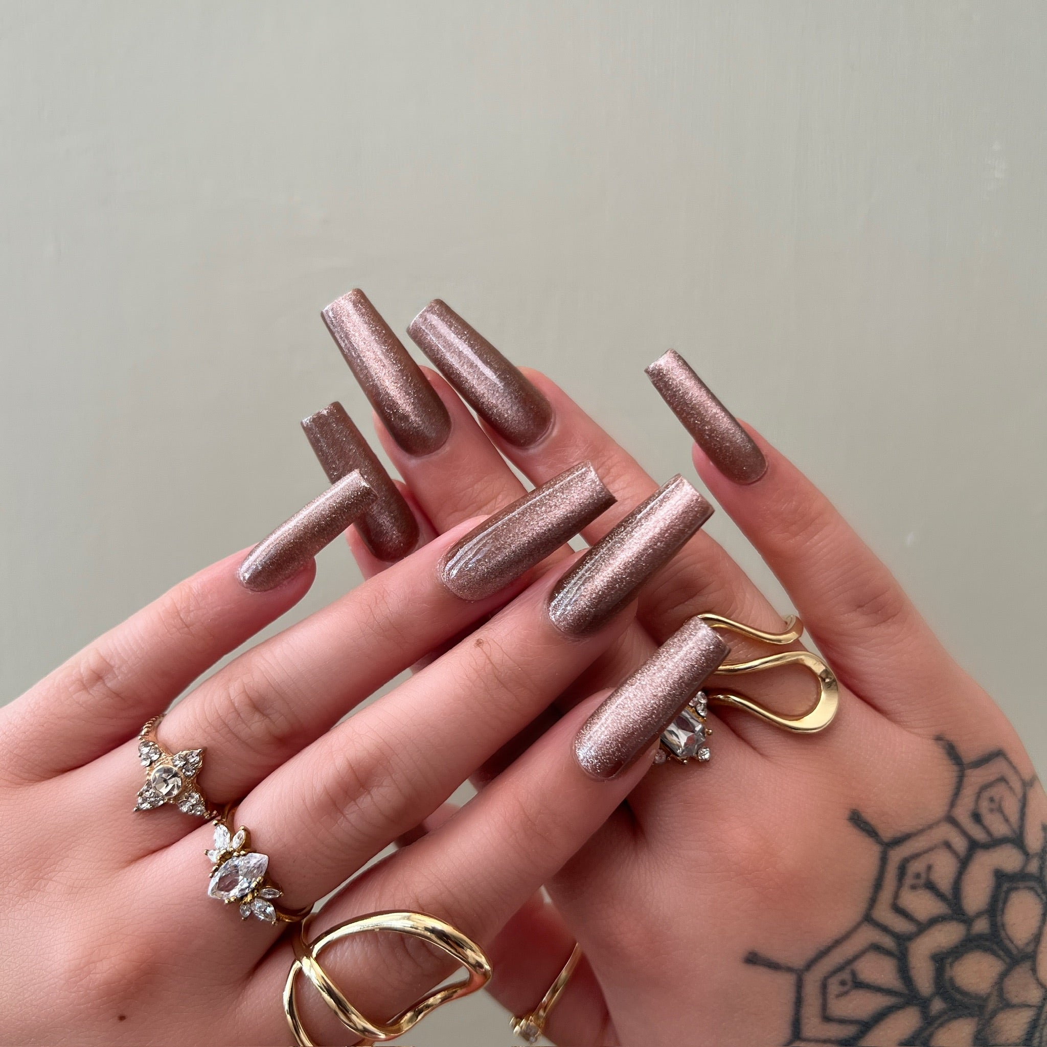 Model is wearing: Long Square- GLOSSY