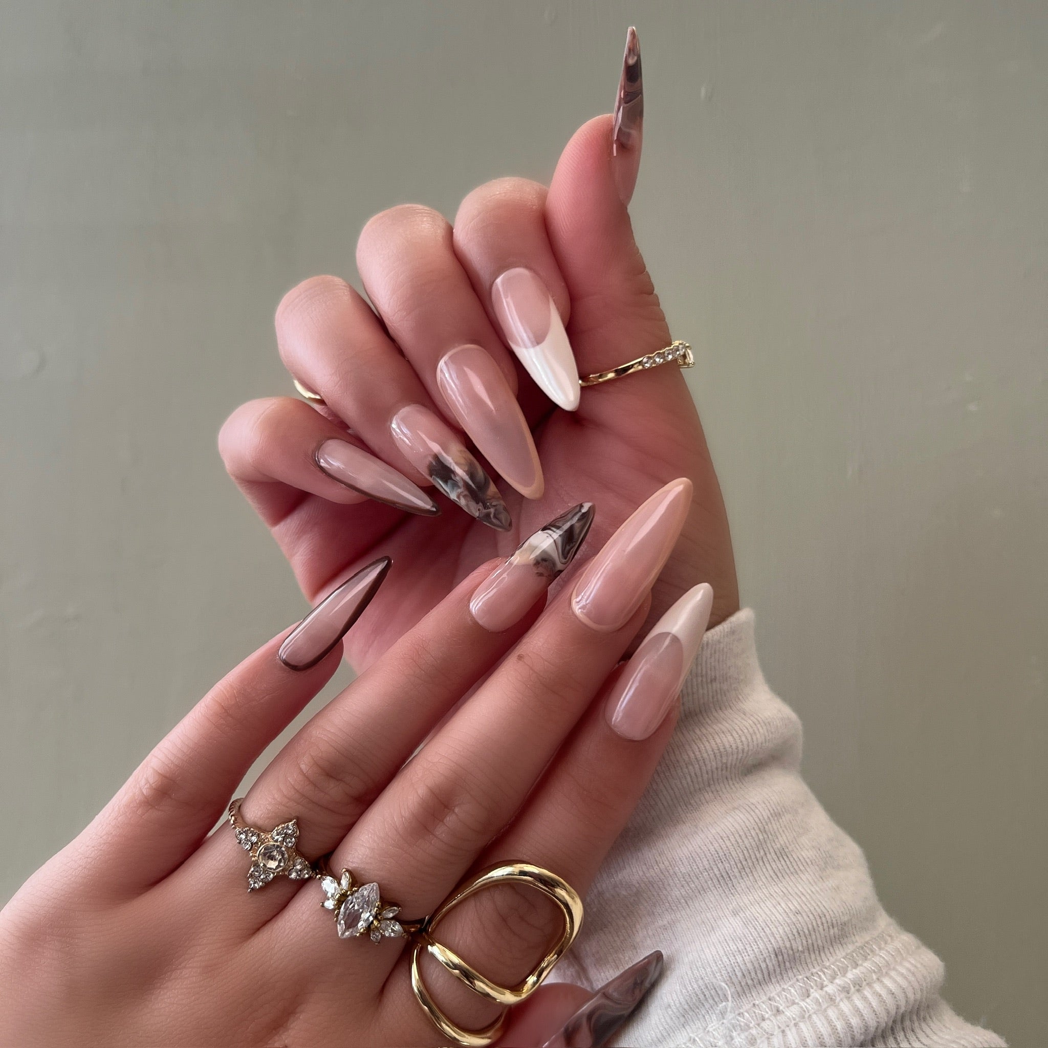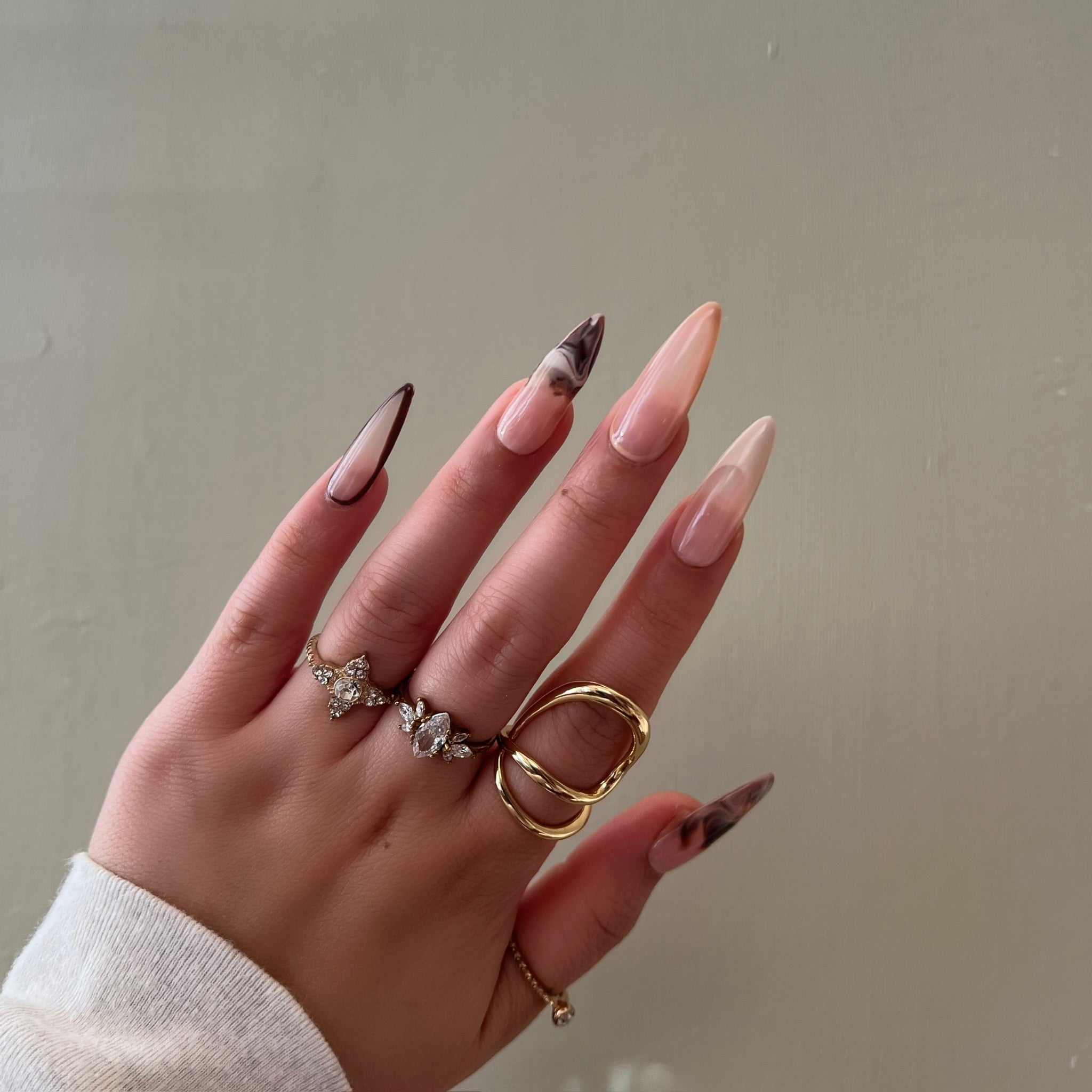 Details: Soft nude tones with rich chocolate marble accents. Minimal, modern, and effortlessly chic.