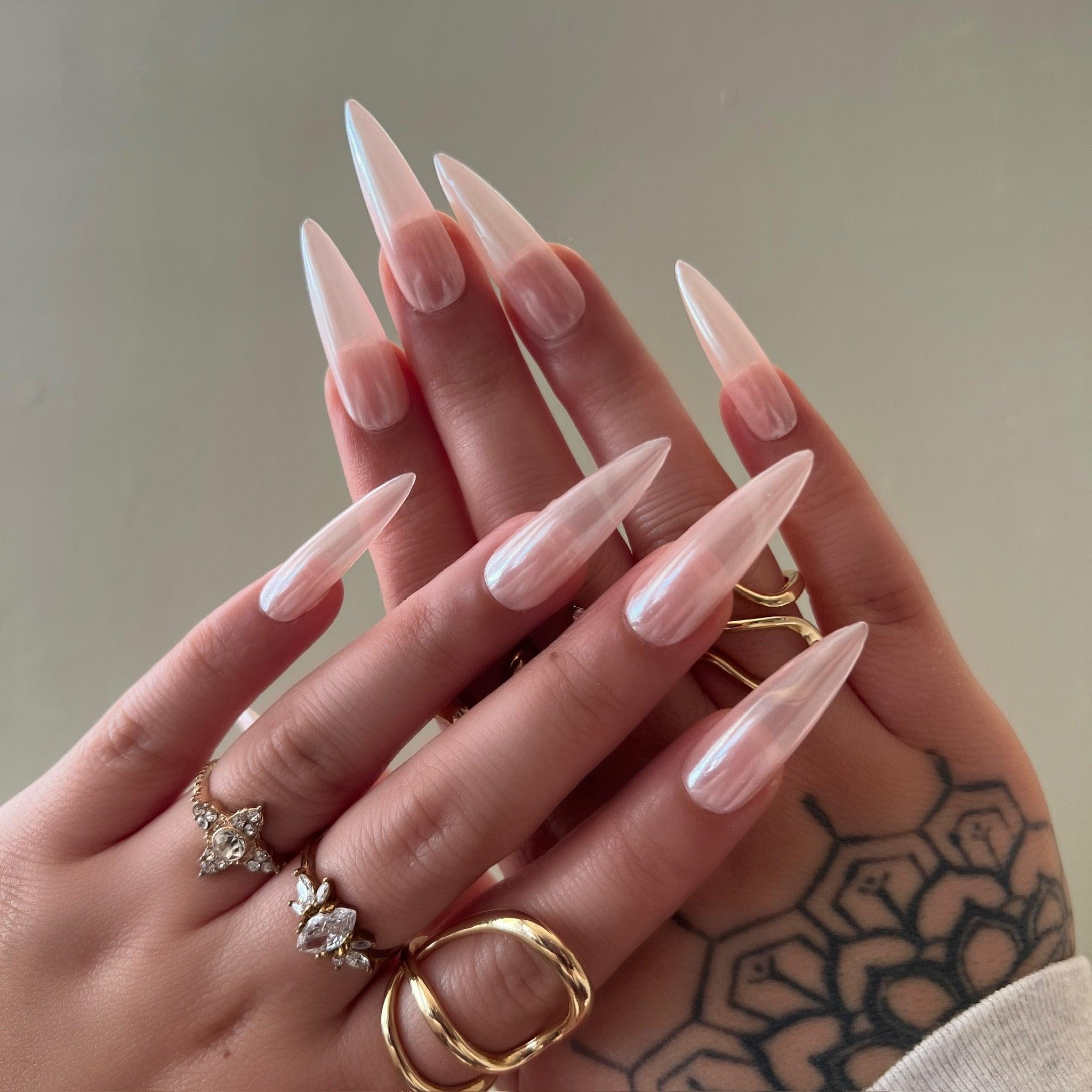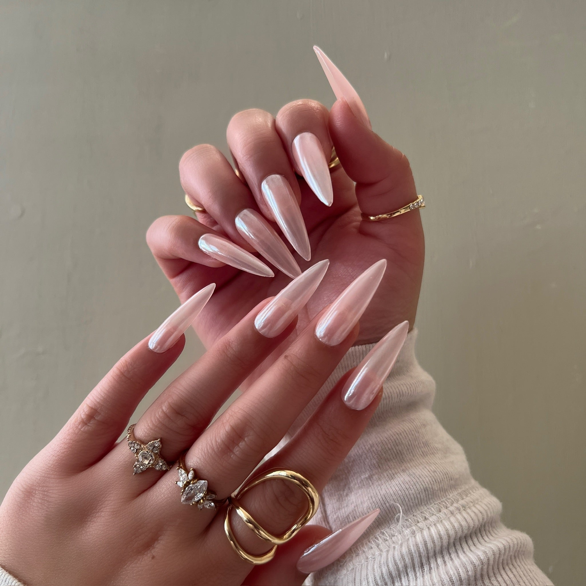 Details: A sheer blush glow kissed with pearly light. Effortless, angelic, and softly luminous—your nails, but heavenly.